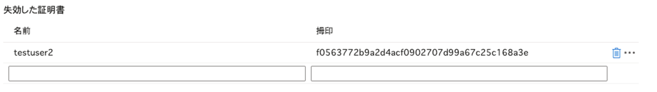 証明書を失効したい場合は、Azure Portalで失効する証明書の拇印を入力します。
