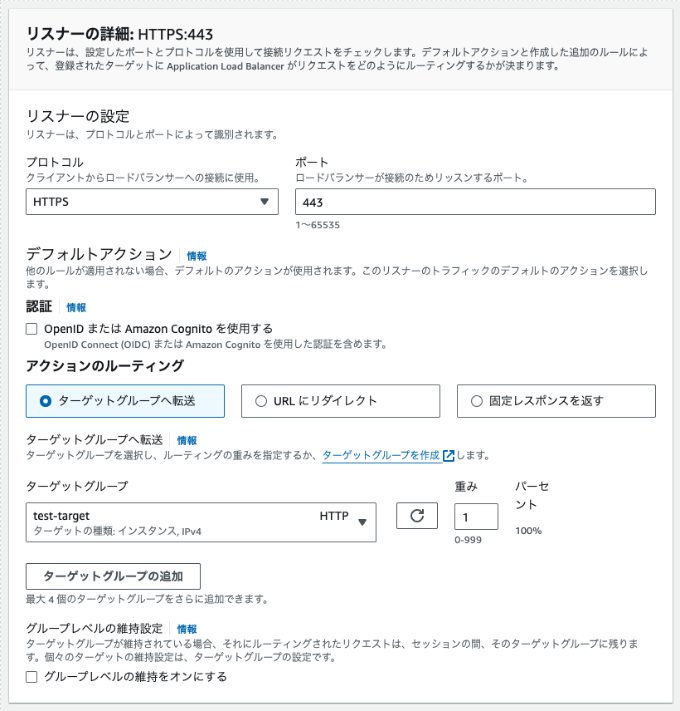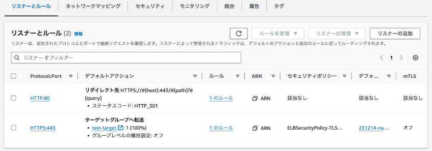 ③ この状態で保存するとHTTPS:443リスナーが有効となってALBがhttps対応となります。