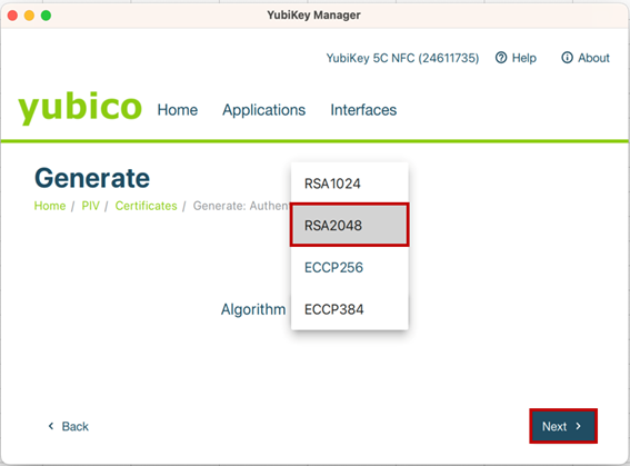⑤ 「RSA2048」を選択します。