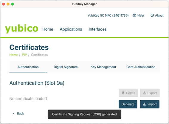 発行後の証明書をYubiKeyに取り込む