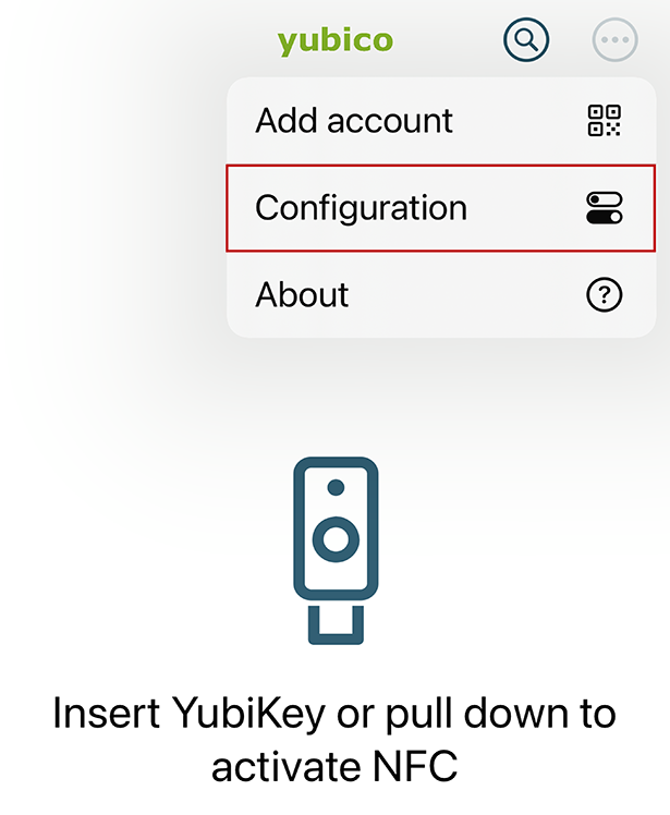 ② YubiKey デバイスを準備して、「YubiKey Manager」を起動します。 画面右上の「…」より「Configuration」 をタップします。
