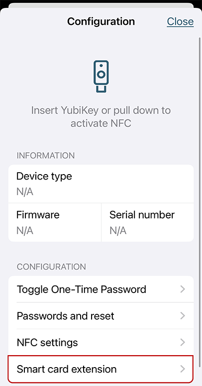 ③ 「Smart card extension」 をタップします。