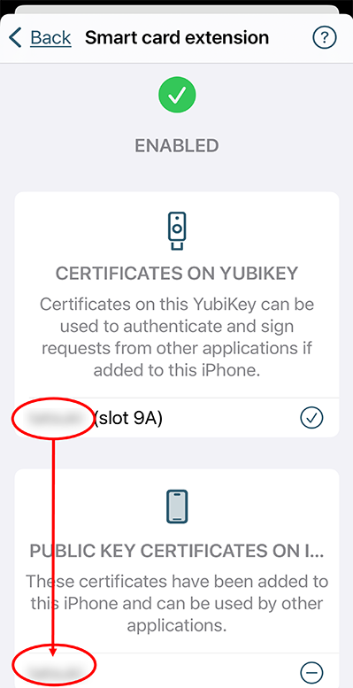 ※秘密鍵はYubiKeyの中にあるので、iPhone単体で証明書は利用できません。