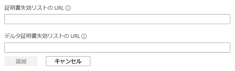③ 「証明書失効リストのURL」と「デルタ証明書失効リストのURL」を設定します。 入力完了後、「追加」をクリックします。