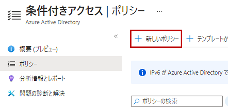 ⑪ 「Azure Active Directory」>「セキュリティ」>「条件付きアクセス」>「ポリシー」に進みます。