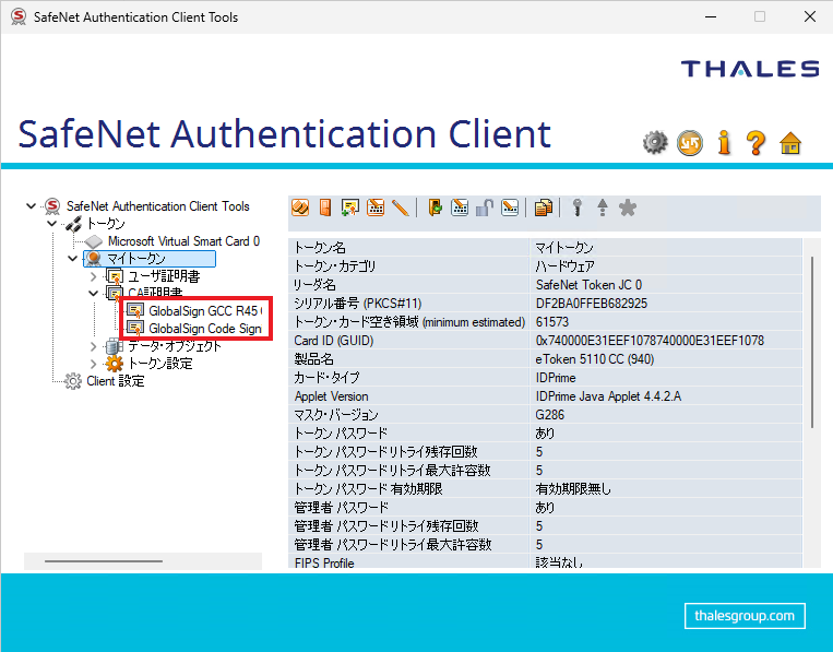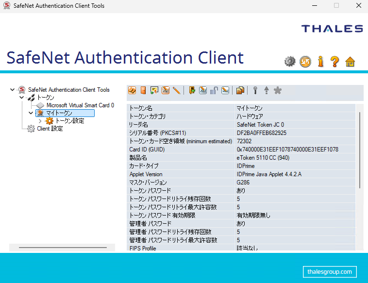 ここでもsafenet eToke5110ccが識別されていることを確認しておくのが無難