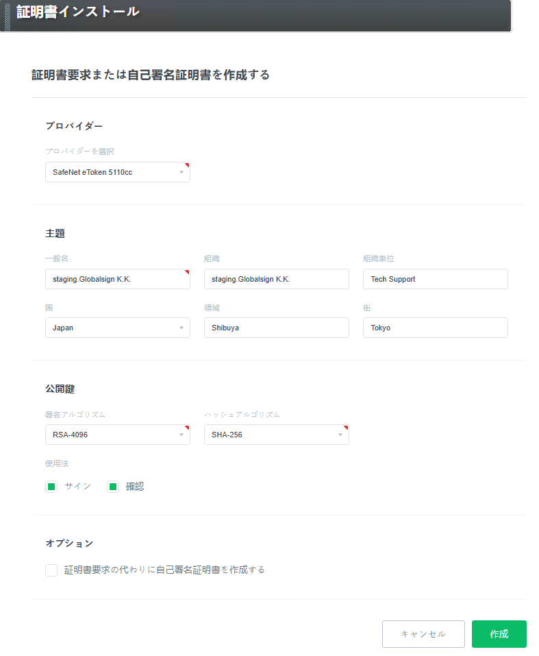 グローバルサインの証明書が格納可能なUSBトークンを取得済みであること