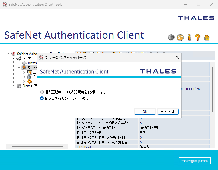 ㉑トークン内で証明書のチェーンが組めるよう、ルート証明書・中間CA証明書をインポートします。