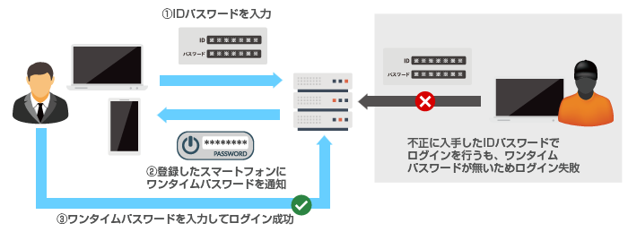 また「リスクベース認証」の要素を一部加味することで、より強化することもできます。 「リスクベース認証」は認証に成功したアクセスの中からユーザの環境変数や行動パターンを記録して分析し、普段からブラウザの種類やIPアドレスのパターンを検知しておくことで、「なりすまし」にあったとき、いつもとは違うアクセスを見つけることができます。