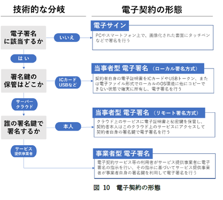 電子契約とは、「電子的に作成した契約書を、インターネットなどの通信回線を用いて契約の相手方へ開示し、契約内容への合意の意思表示として、電子署名法2条1項の電子署名を付与することにより契約の締結を行うもの。」