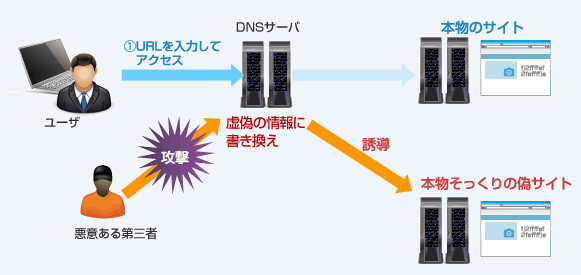 ・DNS サーバに虚偽の情報を書き込む