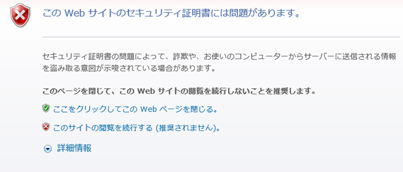 「このWebサイトのセキュリティ証明書には問題があります。」などの警告が表示される場合があります。