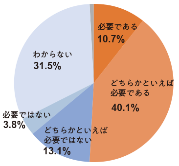 独立行政法人大学改革支援・学位授与機構の『高等教育機関における電子証明書に関する調査報告書(2-3-1. 証明書の電子化の必要性)』 によると、日本の高等教育機関に行った「学位・成績等証明書を電子化する必要性」においての調査(図1)では、必要である、どちらかというと必要であるという回答が50.8%となりました。