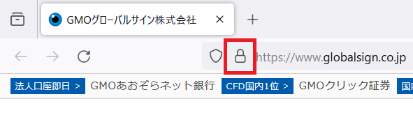 信頼できるウェブサイトとフィッシングサイトを区別するには、設定されているSSLの詳細を確認することが非常に有効です。鍵マークをクリックするとウェブサイトの運営組織などSSL取得時に審査された情報を確認することができます。