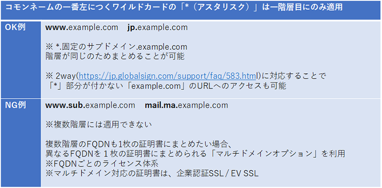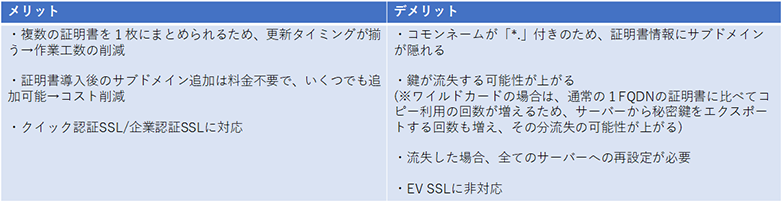 SSLサーバ証明書の更新管理の手間が省けることや将来的にサブドメインでサイトを増やす可能性もあり、その場合はSSLサーバ証明書のコスト削減もできることから、M氏はデメリットも理解したうえで、ワイルドカードをオプションで利用することにしました。